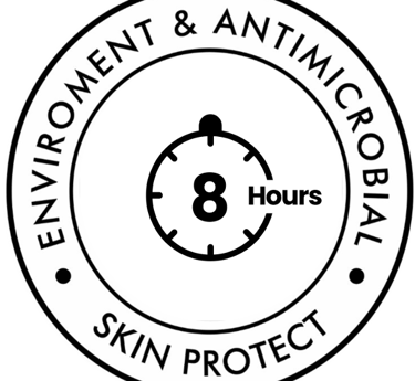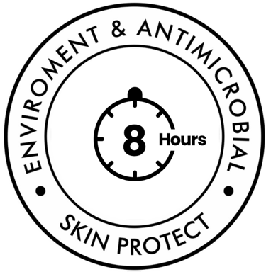 Tecnología única con escudo de protección antimicrobial y anticontaminación por hasta 8hrs.